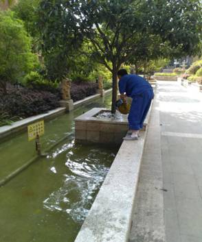 三、近日,随着气温、地温的不断上升,天宇物业小区内的树木、绿植、在骄阳的烧灼下,再不浇水树木就枯死了,天宇物业工作人员与2018年7月19日对小区内的树木开始了春季绿化的浇水工作,冒着35度的高温,把小区的绿植彻底浇了一遍。通过一天的浇水后,小区更美了,绿意更浓了,到处充满着勃勃生机。如下图所示: