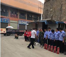 本次演练分为三大部分,一是向各商家宣传消防知识,二是组织员工学习消防基础知识及消防器材的安装和使用;三是灭火实际操作。